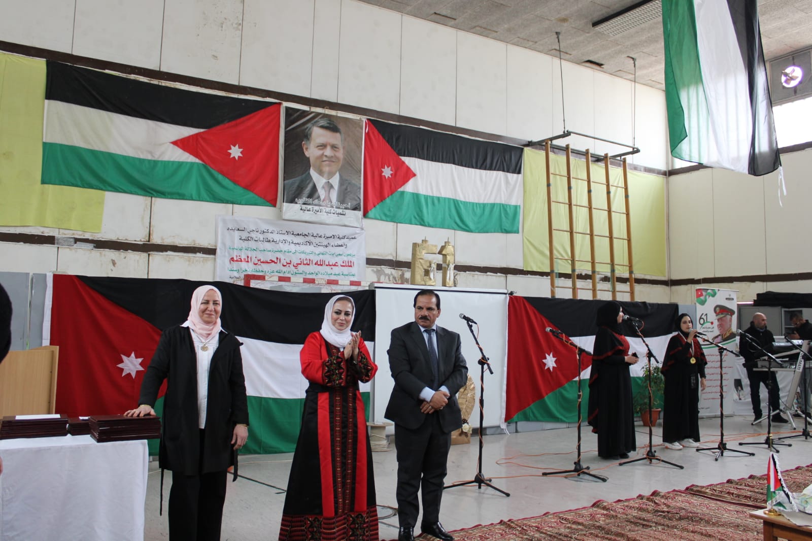 استهل الحفل بالسلام الملكي فكلمة ترحيبية لمنسق الحفل مساعد العميد للشؤون الطلابية الدكتورة مي الرقاد نوهت فيها بأهمية إحياء وتخليد بطولات الوطن الهاشمي كمعركة الكرامة وخصوصية الاحتفال بعيد الام والفرح بقدوم شهر الخير والبركة شهر رمضان الكريم