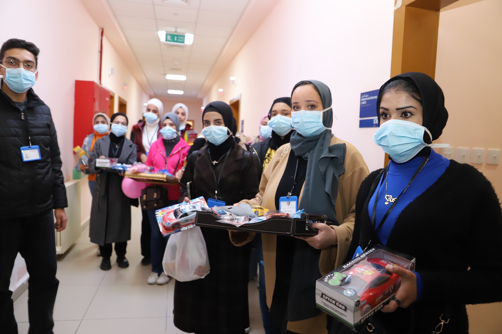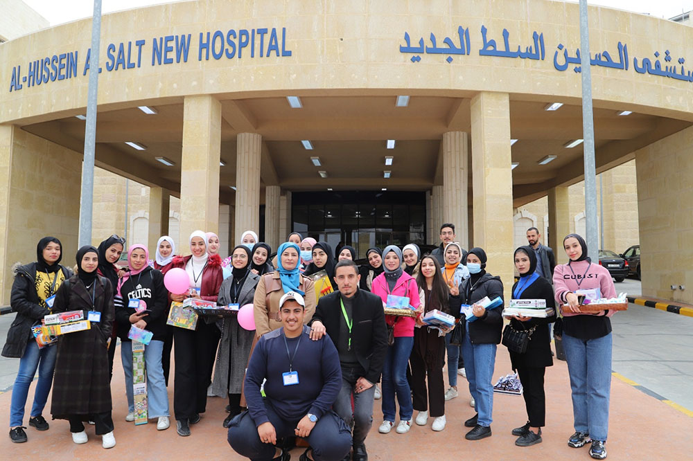 قامت مجموعة من طلبة جامعة البلقاء التطبيقية وبأشراف من عمادة شؤون الطلبة بزيارة الى قسم الاطفال في مستشفى السلط الجديد ، حيث قام الطلبة وبمناسبة شهر رمضان المبارك بتوزيع الهدايا والحلو على الاطفال الذين يرقدون على اسرة الشفاء، مما ترك الاثر الطيب عند الاطفال وادخل البهجة والسرور في نفوسهم .