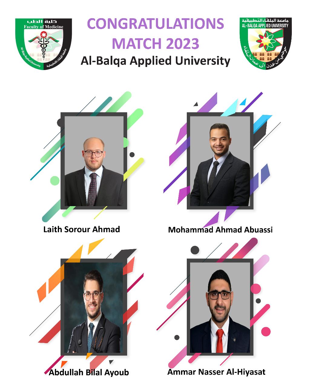 أربعة من خريجي الفوج الاول من طب البلقاء التطبيقية يحصلون على قبولات التدريب السريري في برامج الإقامة الأمريكية