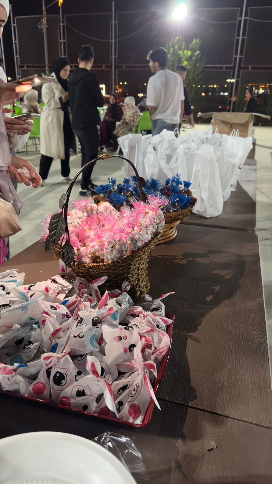 نظم طلاب تخصص الصيدلة كلية التمريض مساء اليوم الأحد 9/ 4/ 2023 إفطارا خيريا لأيتام جمعيه نفحات الخير بالتعاون مع جمعية زوايا للثقافة و الفنون حيث قام أعضاء الجمعيه من الفنانين التشكيليين بالرسم على وجوه الأطفال و توزيع الهدايا عليهم و قام طلاب التخصص بعمل مسابقات و فقرات تفاعلية و توزيع الجوائز على الأطفال كما تخلل الإفطار تيلي ماتش للأطفال نظمته أسرة مركز GLC و التي تم عمل الإفطار على ملاعبهم ويأتي تنظيم هذا الإفطار ضمن إطار المسؤولية الإجتماعية لجامعة البلقاء التطبيقية و كلية التمريض خصوصا ودورها في خدمة أبناء المجتمع المحلي بفئاته المختلفة من أيتام و أُسر عفيفة.