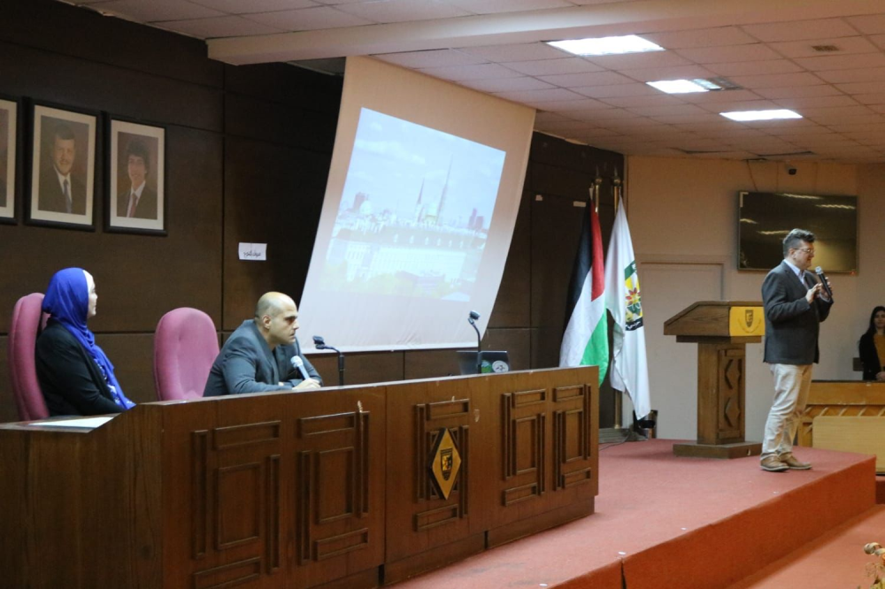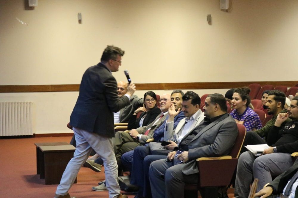 في إطار جهود الجامعة المستمره في نشر ثقافة الريادة والابتكار و بالتعاون ما بين وحدة التعاون والعلاقات الدولية ومركز الابتكار والإبداع و ريادة الأعمال، استضافت كلية عمان للعلوم المالية والإدارية الخبير النمساوي البروفيسور يوهانس لنديز للحديث عن ريادة الأعمال والأفكار الإبداعية حيث تناولت ورشة العمل عدة محاور من ظمنها تعريف الطلبة عن مفهوم الابتكار والإبداع و ريادة الأعمال وكيفية التفكير بطريقة مختلفة حيث تفاعل الطلبة مع الأنشطة التفاعلية التي قدمها الخبير النمساوي ،وتأتي هذه الورشه بالتعاون مع الوكالة الألمانية للتعاون الدولي وفي ضوء سعي الجامعة المستمر للتشبيك و التشارك مع شركاءها المختلفين حضر الورشه كل من عميد الكلية الأستاذ الدكتور مروان النسور ومدير مركز الابتكار و الإبداع و ريادة الأعمال الأستاذ الدكتور أوس القيسي ومدير ة وحدة التعاون والعلاقات الدولية الدكتورة دانا محادين وأعضاء الهيئة التدريسية وعدد كبير من الطلبة .