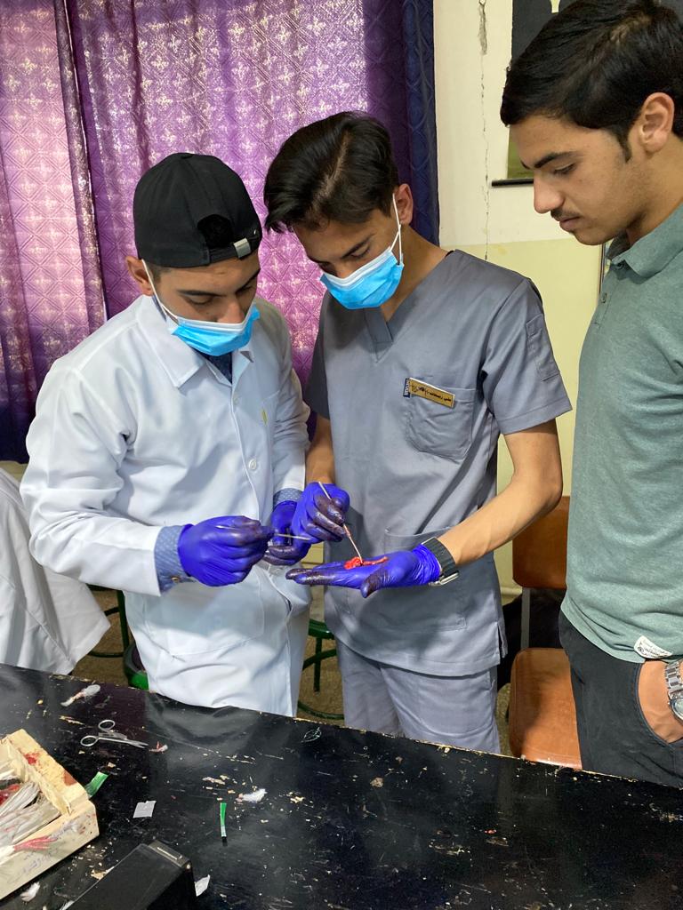 إضافة إلى ذلك تم تدريب الطلبة على كيفية تخدير الحيوانات وسحب الدم وإعطاء الحقن .