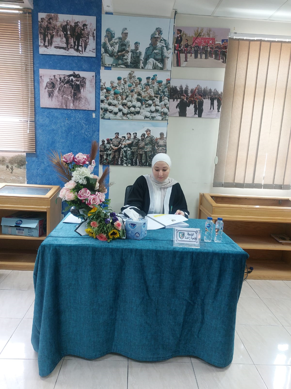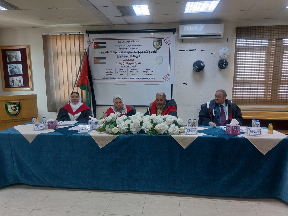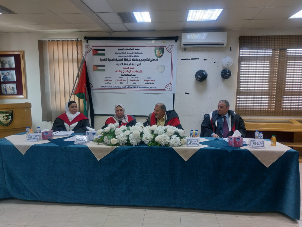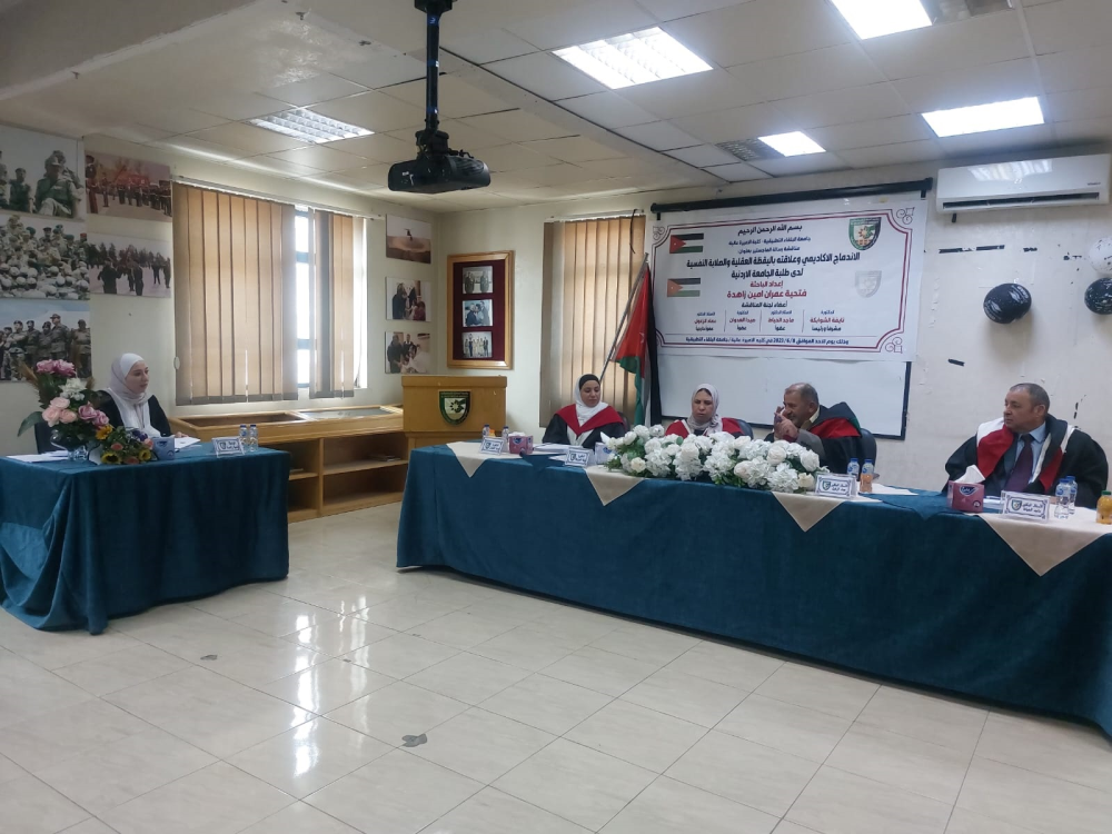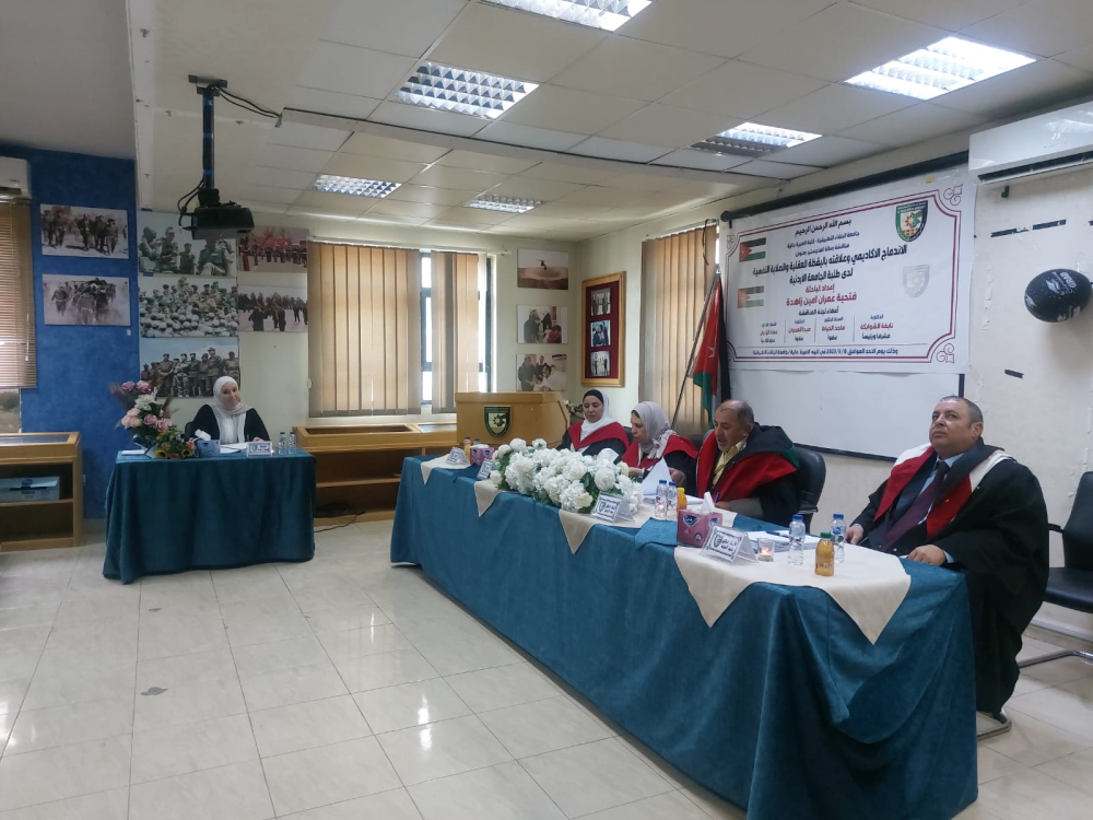 مناقشة رسالة ماجستير للطالبة فتحية عمران امين زاهدة في كلية الأميرة عالية الجامعية