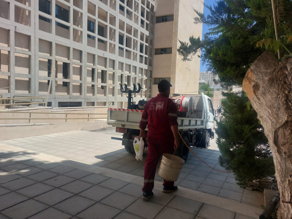 حيث تمت عمليات الرش بالمبيدات الحشرية للحد من انتشار الحشرات الطائرة والزاحفة خلال فصل الصيف، ووضع طعوم للقوارض في اماكن تواجدها وتكاثرها على أكمل وجه.