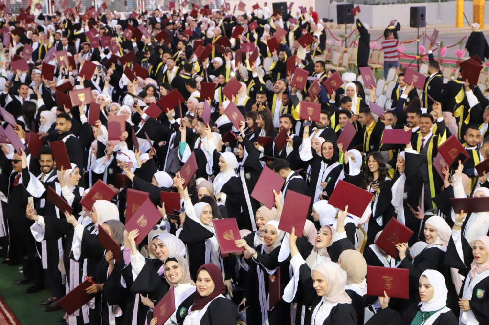 وفي ختام الحفل سلم العمداء الشهادات على الطلبة الخريجين والبالغ عددهم (1006).