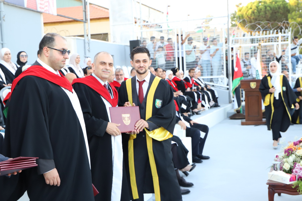 وقدم عمداء الكليات العبادي وحياصات والحديد التهاني والتبريك باسم رئيس الجامعة وأسرتها إلى الطلبة الخريجين وذويهم معبرين عن اعتزاز الجامعة بجميع طلبتها ليكونوا مرآة يعكسون الصورة المتميزة لها متمنيين لهم دوام التوفيق والنجاح في حياتهم العلمية والعملية وأن يكونوا على الوعد والعهد مخلصين لوطنهم وللقيادة الهاشمية مؤديين رسالتها في كافة المجالات.