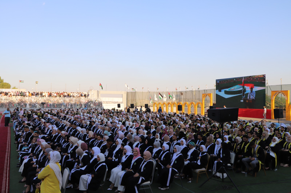 وقدم عميد الكلية غيث التهاني والتبريك بإسم رئيس الجامعة وأسرتها إلى الطلبة الخريجين وذويهم معبراً عن اعتزاز الجامعة بجميع طلبتها ليكونوا مرآه يعكسون الصورة المتميزة لها متمنيين لهم دوام التوفيق والنجاح في حياتهم العلمية والعملية وأن يكونوا على الوعد والعهد مخلصين لوطنهم وللقيادة الهاشمية مؤديين رسالتها في كافة المجالات.