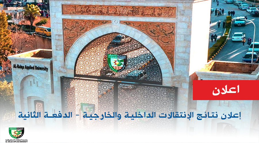 يعلن المسجل العام في جامعة البلقاء التطبيقية عن أسماء الطلبة الذين تمت الموافقة على انتقالهم من الجامعات الرسمية الأخرى الى جامعة البلقاء التطبيقية, ومن كلية الى اخرى أو من تخصص الى آخر وأسماء الطلبة المتقدمين بطلبات الإنتقال من أكاديمية الأمير الحسين بن عبدالله الثاني للحماية المدنية (الدفعــة الثانية) على بداية للفصل الدراسي الأول من العام الجامعي 2023/2024.