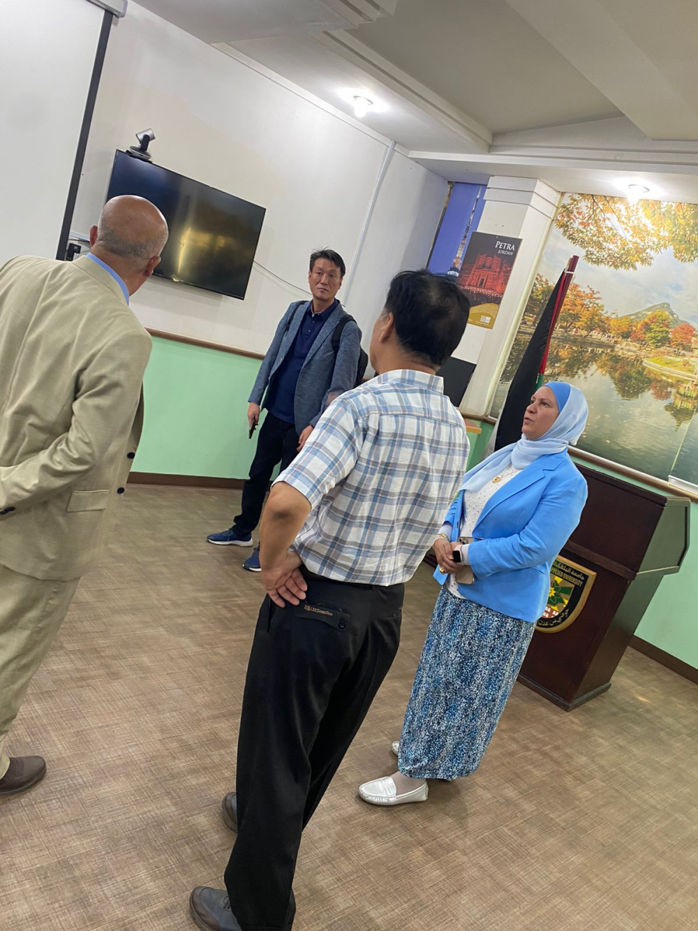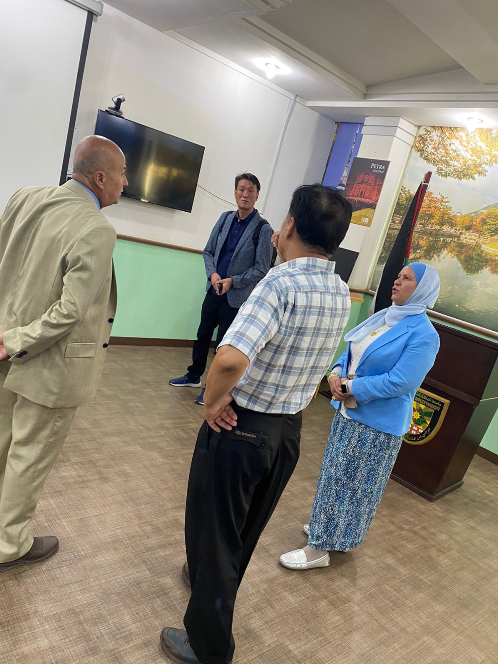 استضافت مديرة المركز الاردني الكوري الدكتورة ربا ابو شهاب، وبحضور عميد كلية الذكاء الاصطناعي الاستاذ الدكتور عمر الزعبي ممثلين من شركات تكنولوجيا المعلومات والاتصالات الكورية، والذين تم تعيينهم من قبل الوكالة الوطنية الكورية لمجتمع المعلومات NIA، وذلك لاجراء تشاور وتباحث متبادل حول الاجهزة والمعدات والمنتجات الخاصة بالمحتوى التعليمي اللازمة لعمل المركز؛وذلك استكمالاً لاجراءات التحديث والتحسين الاول للمركز الاردني الكوري ، والذي سيشمل تحسين مرافق المركز مثل مختبر الانترنت ومختبر التدريب وغرفة مؤتمرات الفيديو ومختبر التحول الرقمي؛ بهدف تعزيز التحول الرقمي وتضييق الفجوة الرقمية بين الدول النامية والدول المتقدمة، وتعزيز التعاون الثنائي بين جامعة البلقاء والوكالة الوطنية الكورية في قطاع تكنولوجيا المعلومات والاتصالات.