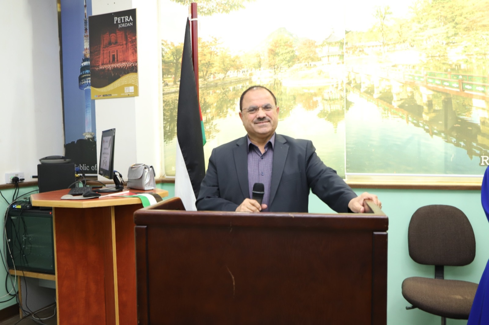 ورحب نائب الرئيس للشؤون الأكاديمية الأستاذ الدكتور موسى أبو عرابي خلال لقائه مندوباً عن رئيس الجامعة الأستاذ الدكتور أحمد فخري العجلوني بالوفد والطلبة في المركز الأردني الكوري للمعلومات وتكنولوجيا الإتصالات ، وقدم لمحة موجزة عن الجامعة وكلياتها والتخصصات التي تدرس فيها ، مؤكداً حرص الجامعة على تعزيز وبناء التعاون مع كافة الملحقيات الثقافية للدول الشقيقة والصديقة في مختلف المجالات العلمية والأكاديمية .