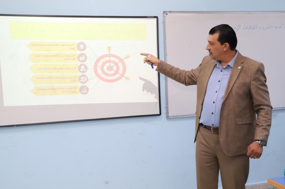 وحاضر في دورة كتابة التقارير والمخاطبات الرسمية الدكتور سليمان وشاح والتي تهدف إلى اكساب المتدربين المهارات اللازمة في الإتصال الكتابي وإعداد التقارير وصياغة مخاطبات ومذكرات الأعمال وتأصيل مهاراتهم بمفهوم المراسلات والتقارير والمذكرات وأنواعها من خلال التعرف على الأساسيات التي تقوم عليها كتابة التقارير على إختلاف انواعها.