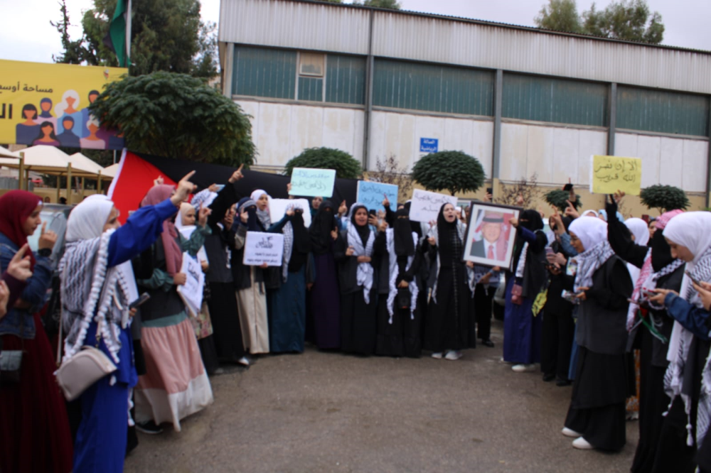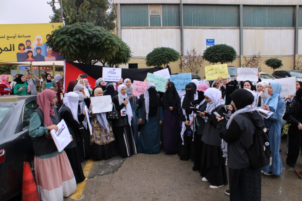 وقفة تضامنية في كلية الأميرة عالية الجامعية نظمتها طالبات فريق غراس وبالتنسيق مع مساعد العميد للشؤون الطلابية بعنوان ( وقفة مع اهلنا في فلسطين) وتأتي هذه الوقفة دعمًا لاهلنا في غزة وتضامنًا لصمودهم في مواجهة الانتهاكات الصهونية ضدهم
