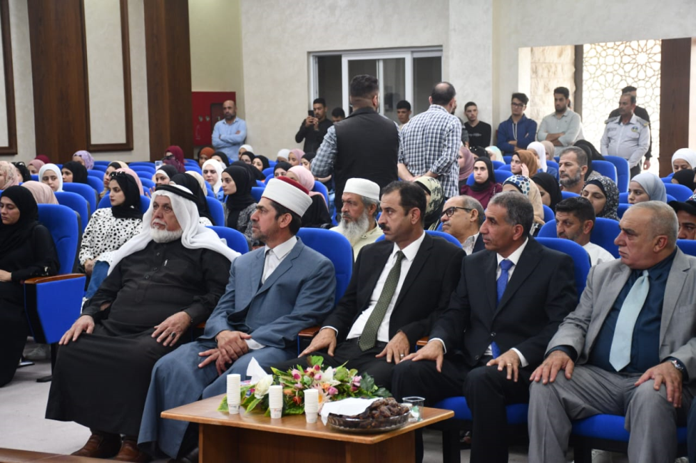 مندوبا عن مفتي عام المملكة سماحة الشيخ عبد الكريم الخصاونه رعى المفتش العام لدائرةالأوقاف سماحة الشيخ الدكتور صفوان عضيبات الإحتفال الذي نظمته كلية عجلون الجامعية /جامعة البلقاء التطبيقية بمناسبة ذكرى المولد النبوي الشريف بحضورعميد كلية عجلون الجامعية الأستاذ الدكتور وائل الربضي وفضيلة الدكتور محمد بني طه مفتي عجلون وبعض مدراء الدوائر الحكومية ومساعدي العميد وعدد من أعضاء الهيئتين الإدارية والتدريسية وعدد كبير من طلبة الكلية في قاعه الشهيد محمد العزام .