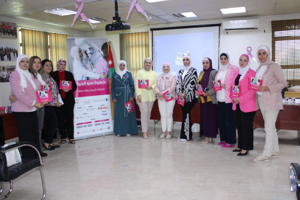 وقامت المثقفة صحيًا من مؤسسة الحسين للسرطان السيدة أزهار النصر بإطلاع الحضور على البرنامج الأردني لسرطان الثدي كونه برنامجًا وطنيًا تم تأسيسه عام 2007 بقيادة ودعم مؤسسة ومركز الحسين للسرطان ووزارة الصحة ،ويهدف إلى خفض معدلات الوفيات الناجمة عن سرطان الثدي من خلال الفحص المبكر ويتضمن البرنامج ثلاثة محاور :