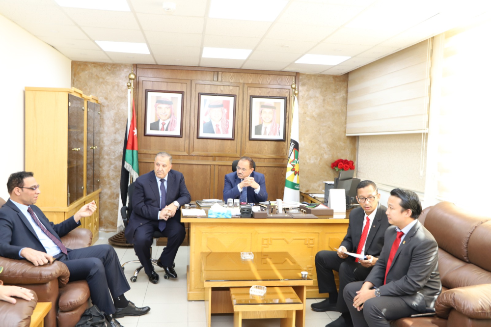 وجرى خلال اللقاء الذي حضره نائب رئيس الجامعة لشؤون الكليات الاستاذ الدكتور زكريا القضاة ومساعد الرئيس الاستاذ الدكتور سعيد ابو رمان وعميد البحث العلمي والابتكار الاستاذ الدكتور محمد غيث ومدير وحدة المكتبة المركزية الاستاذ الدكتور عثمان عبيدات ، بحث أوجه التعاون المحتملة في مجالات البحث والتطوير وتبادل الطلاب والأكاديميين وإمكانية تطوير برامج مشتركة للبحث والابتكار بين الجامعتين، بالإضافة إلى تبادل الخبرات والمعرفة بين الباحثين والأساتذة.