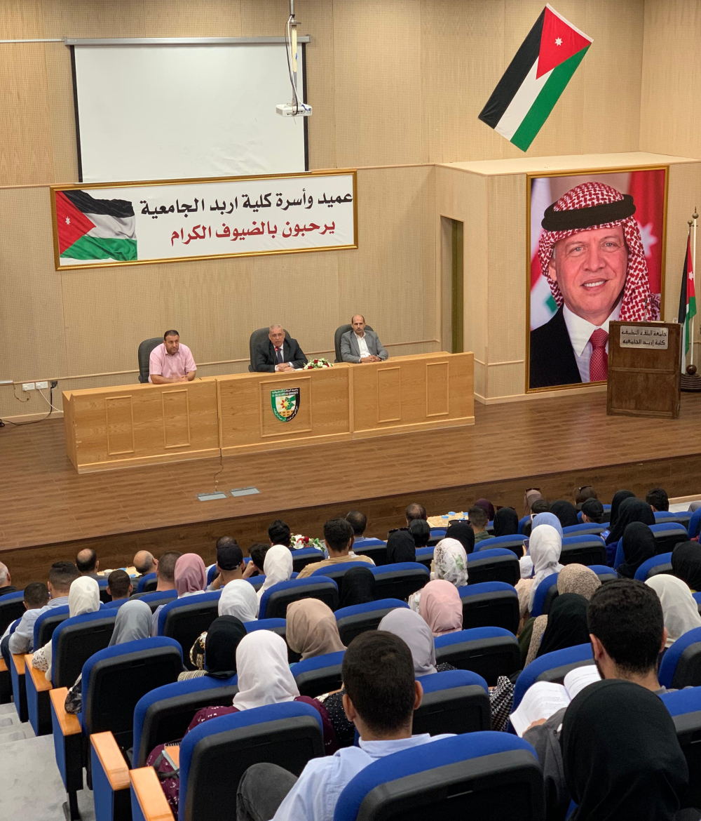 في إطار التفاعل والتواصل بين إدارة الكلية وأعضاء الهيئة التدريسية والإدارية والطلبة نظمت عمادة الكلية لقاءً لعميد الكلية الأستاذ الدكتور يحيا خريسات بالطلبة المستجدين بحضور نائب ومساعدي العميد ورؤساء الأقسام الأكاديمية والإدارية وعدد من أعضاء الهيئتين التدريسية والإدارية والطلبة .