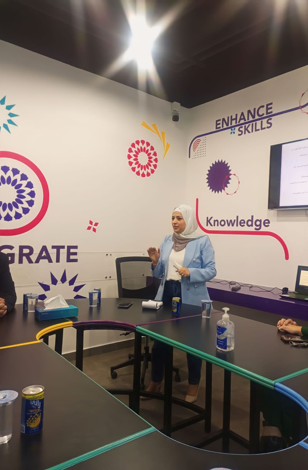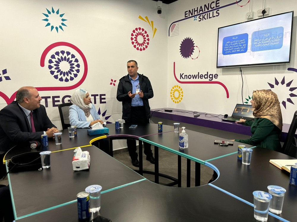 وتضمنت الزياره جولة ميدانية الى مركز الابتكار والابداع وريادة الأعمال تخللها اجتماع مع الكادر الإداري بالمركز في منصة زنك. حيث رحب مدير المركز الدكتور عوجان بالضيوف وأكد على أهمية العمل التشاركي بين الطرفين، وقدم عرضا موجزا عن مركز الابتكار والابداع ورياده الأعمال.