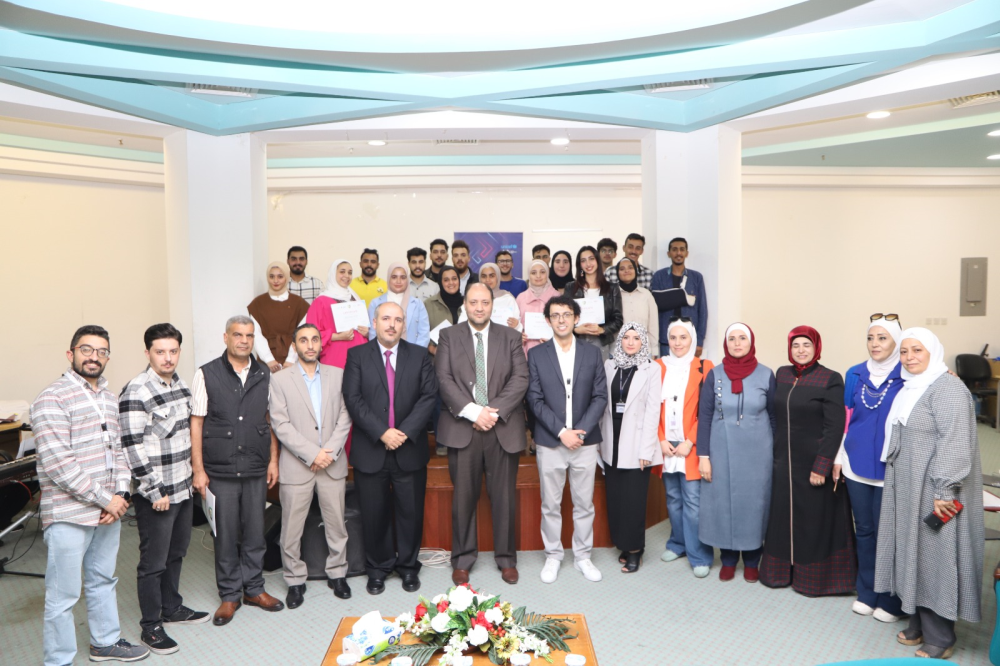 في إطار التعاون المستمر بين عمادة شؤون الطلبة ومركز الابتكار والابداع وريادة الاعمال ومنظمة دوت الاردن في تنفيذ برنامج المهارات الرقمية الأساسية والوظائف المتناهية الصغر والذي اشتمل على ?? ساعة تدريبية، ومندوبا عن رئيس الجامعة الاستاذ الدكتور احمد فخري العجلوني رعى عميد كلية الاعمال الدكتور محمد النسور بحضور مدير مركز الابتكار والابداع وريادة الاعمال الاستاذ الدكتور البراء عوجان ومدير المشاريع في شركة دوت جوردان تخريج المشاركين في البرنامج التدريبي " المهارات الرقمية والوظائف متناهية الصغر" الذي نظمه مركز الابتكار والابداع وريادة الاعمال وعدد من طلبة الجامعة وذلك على مسرح المكتبة