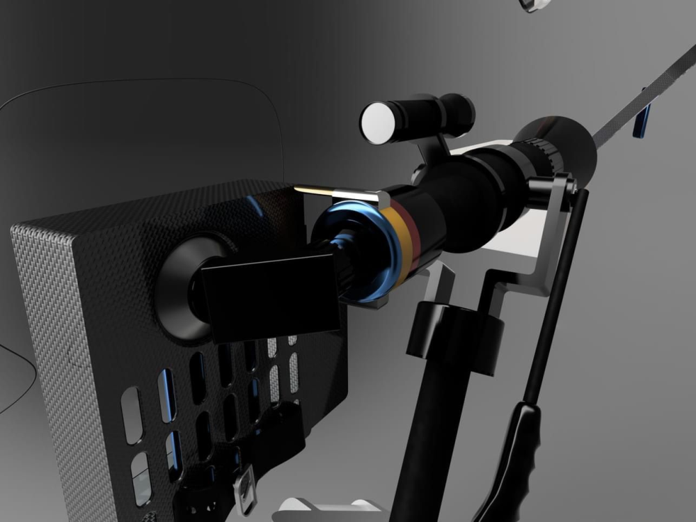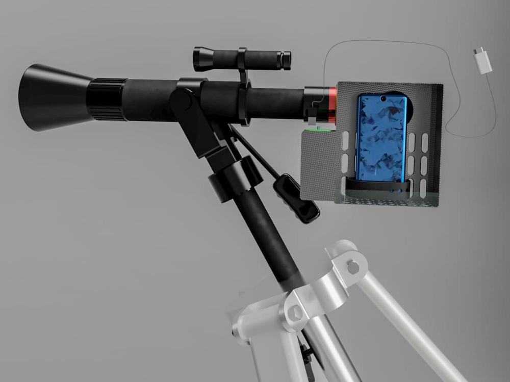 أما الجزء الثاني، فيتألف من مثبت للهاتف قابل للفك والتركيب بسهولة ومصنوع من مواد صديقة للبيئة مثل الكاربون فايبر والمطاط ومادة TPU، مما يمنح القطع عمرًا افتراضيًا طويلاً بتكلفة معقولة. ويُقدم على شكل مجموعة مع كتيّب لتعليمات للاستخدام، متوافق مع جميع أنواع الهواتف والتابلت، يُثبت على التلسكوب بطريقة محكمة لتسهيل توثيق الظواهر الفلكية من قبل هواة الفلك وتسجيلها على هواتفهم الشخصية، وبسعر رمزي لا يتجاوز 20 دولارًا، بهدف تشجيع هواة الفلك على متابعة شغفهم والقضاء على العائق المادي الذي قد يحول بين هواة علوم الفضاء وأحلامهم, بالإضافة الى توفير الفرصة لهم لمراقبة الأحداث الفلكية بفعالية.