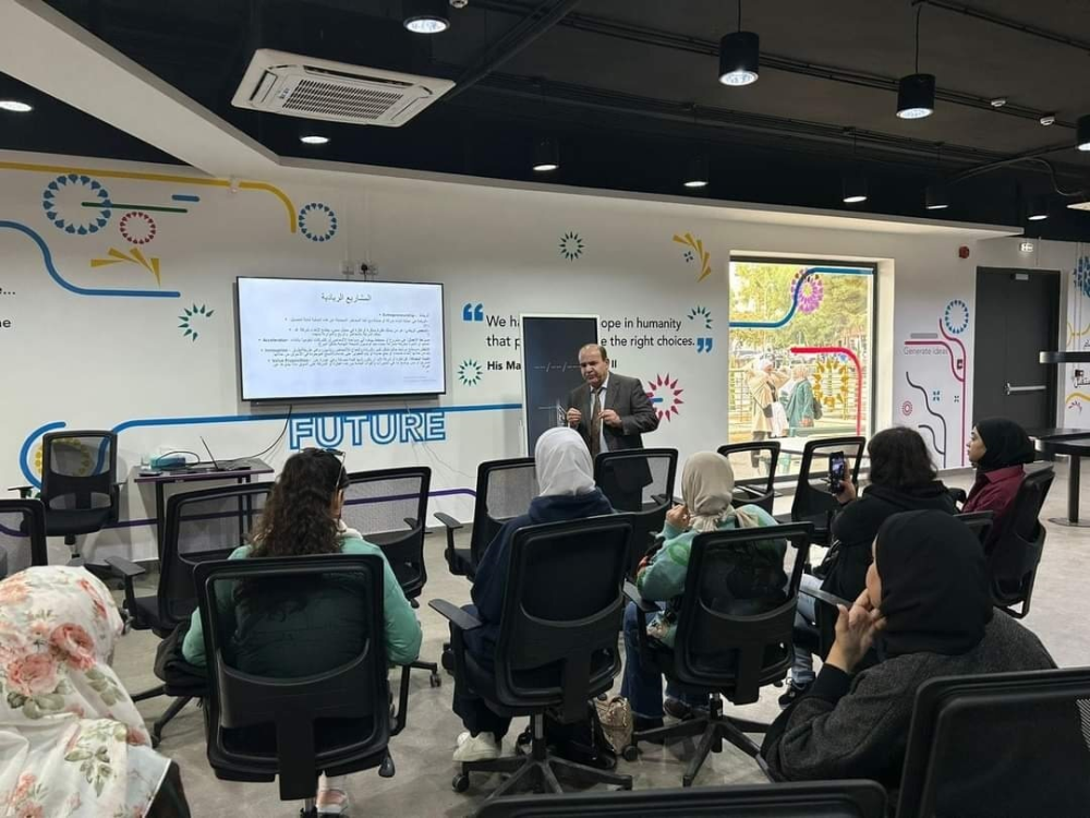 انسجاما مع رؤية مركزا لابتكار والإبداع وريادة الاعمال في جامعة البلقاء التطبيقية في تنميه وتعزيز مهارات الطلبه في الجامعة وضمن فعاليات اسبوع الريادة العالمي 2023 والذي انعقد في حاضنة زنك بالتعاون مع مركز الابتكار والإبداع وريادة الاعمال قدم الاستاذ الدكتور مروان النسور ورشه عمل بعنوان “الوسائط الرقميه في رياده الاعمال “