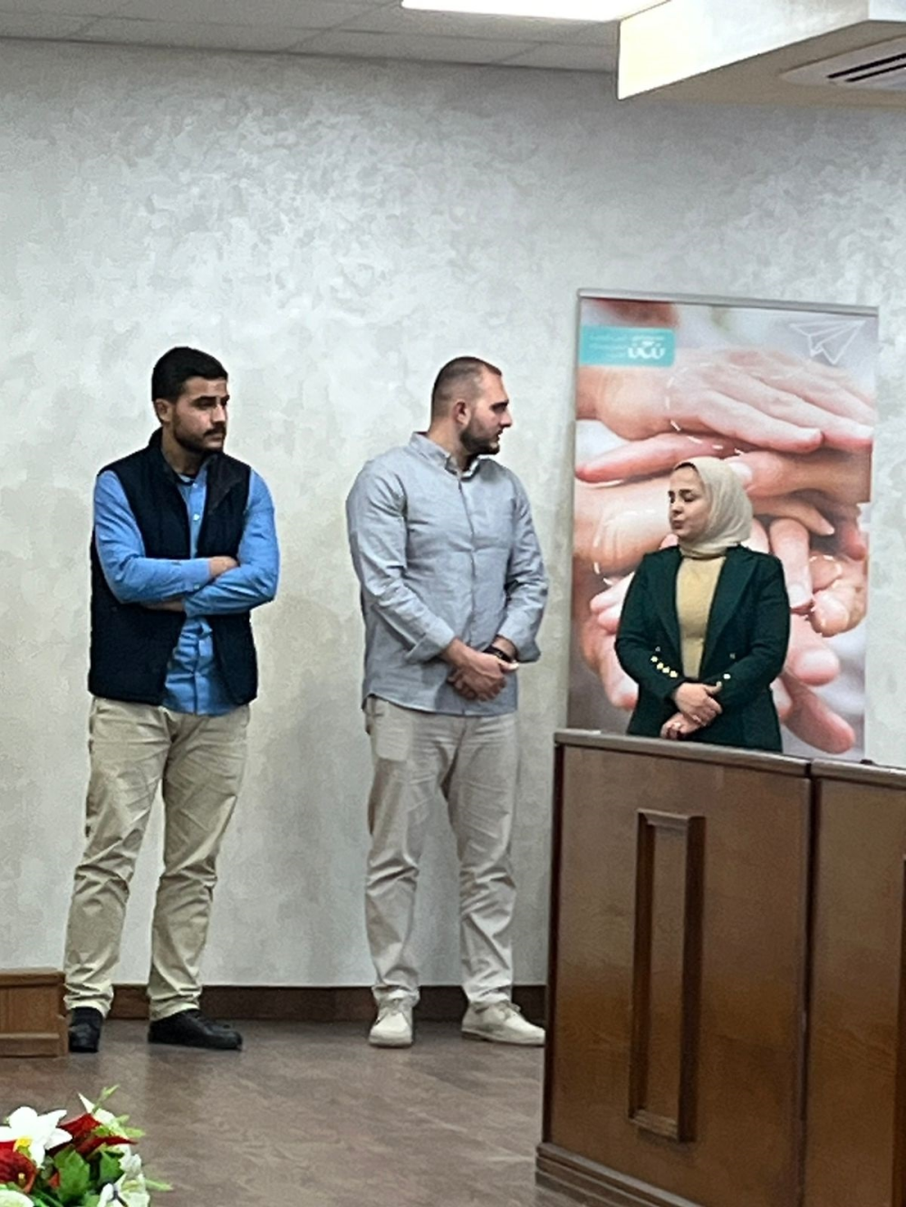 وتحدث في الجلسة كل من معتصم الشخاترة (منسق منصة نحن لإقليم الشمال )وادهم الدوود ( منسق منصة نحن للجامعات ) ، حيث أشاروا ان منصة نحن هي منصة وطنية للتطوع ومشاركة الشباب ،تم اطلاقها بالشراكة بين " نوى" _احد مبادرات مؤسسة ولي العهد ومنظمة الأمم المتحدة للطفولة "يونسف " ، وتأسست المنصة لتكون المنصة الأولى من نوعها لأحداث التغير الإيجابي في المجتمعات من خلال الفرص التطوعية التي يتم طرحها على المنصة وتم الشرح والتوضيح للطلاب عن الية انشاء حساب على المنصة والتسجيل بالفرص المطروحة ومتجر منصة نحن .