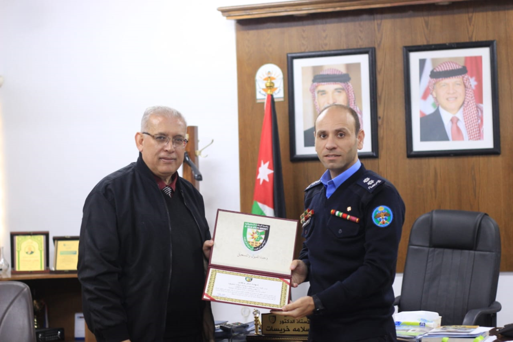 حيث التقى عميد الكلية الأستاذ الدكتور يحيا خريسات في مكتبه بالمحاضرين من فريق ادارة المعلومات الجنائية ،حيث أكد خلال اللقاء على دعم الجامعة والكلية لكافة الجهود التي تبذلها مديرية الأمن العام لتحصين المجتمع والحفاظ على استقراره، وتوجيه الشباب نحو خدمة وطنهم وأمتهم، بعيدا عن دعوات التطرف الفكري الهادفة لهدم قيم الوسطية والاعتدال، ومعرباً عن تقديره واعتزازه بدور مديرية الأمن العام ومرتباتها العاملة في جميع الإدارات والوحدات التابعة لها في تحقيق رؤى جلالة الملك عبدالله الثاني في المحافظة على أمن الوطن والمواطن وحماية الأرواح والممتلكات والتي تعتبر أولوية تتصدر اهتمامات قائد الوطن حفظه الله.