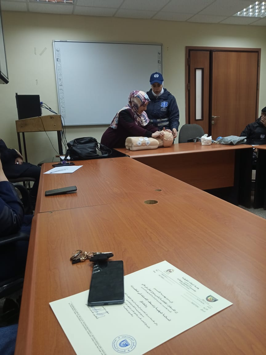 نظمت كلية الاعمال اليوم الموافق 12/17 بالتعاون مع المديرية العامة للدفاع المدني / مديرية دفاع مدني البلقاء دورة الاسعافات الاولية واستخدام طفايات الحريق لموظفي الكلية حيث تم من خلالها التعرف على طرق الاسعافات الاولية للحروق والاختناق ولدغات الحشرات وانسداد مجرى التنفس والجروح بالاضافة الى طريقة استخدام طفايات الحريق حيث تم التطبيق العملي لاطفاء الحريق من قبل المتدربين.