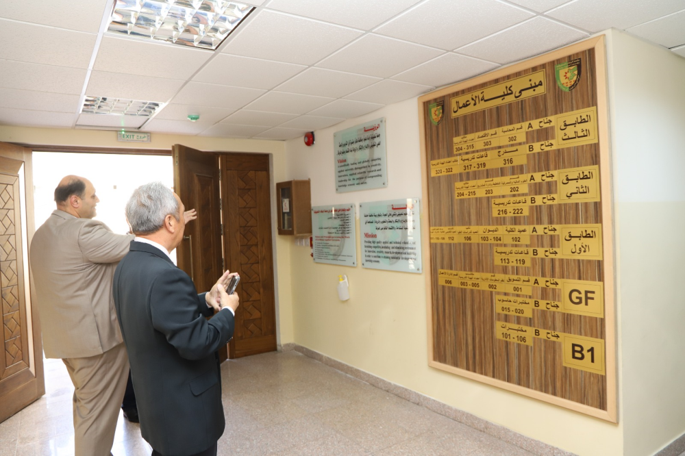 كما تضمنت الزيارة حضور مناقشة رسالة ماجستير في قسم المحاسبة، كما وقامت اللجنة بعمل جولة ميدانية على القاعات التدريسية ، والمختبرات ،ومرافق الكلية ، والاطلاع على مختلف التجهيزات وتفقّد البنية التحتية للكلية ، وحاضنة الاعمال فيها ، كما وتم الالتقاء باعضاء الهيئة التدريسية ورؤساء الاقسام الاكاديمية وعدد من الاداريين، وقد تم الاطلاع على الانظمة الإلكترونية التي تستخدمها الكلية في اللوازم، وادارة شوؤن العاملين، والديوان .