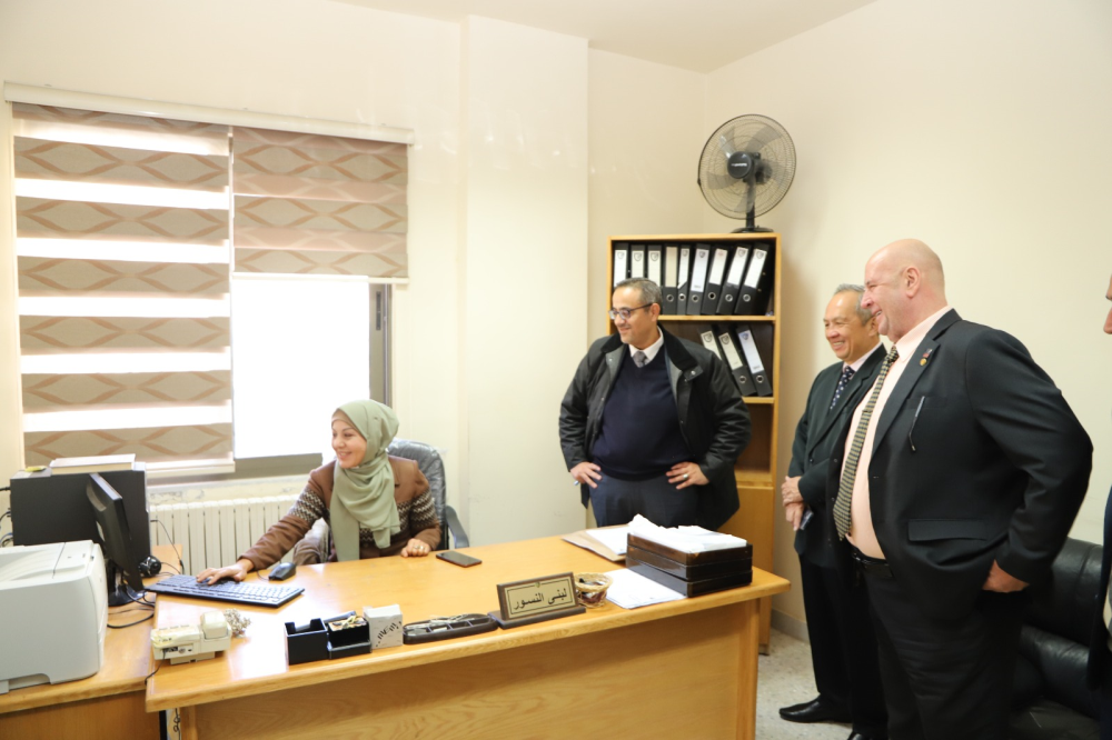 وقد تضمنت الزيارة الاطلاع على سير العملية الاكاديمية ومراجعة ملفات اعضاء الهيئة التدريسية والخطط الدراسية، وملفات المساقات ، وشاشات التعليم الالكتروني على التيمز والمودل .