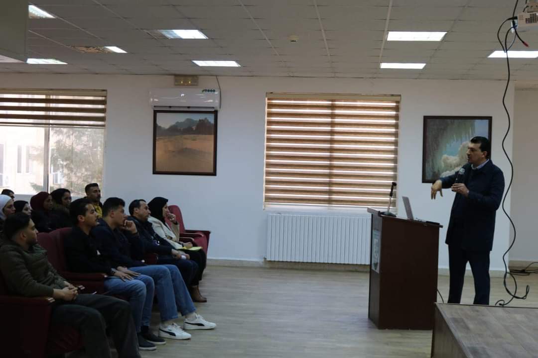 وقدم الدكتور سليمان وشاح البرنامج بشقيه العملي والنظري موضحاً أهمية السيرة الذاتية في عكس شخصية الطالب ومهاراته كما بين مراحل مقابلة العمل وطريقة التواصل مع اللجنة والاستعداد النفسي لذلك .