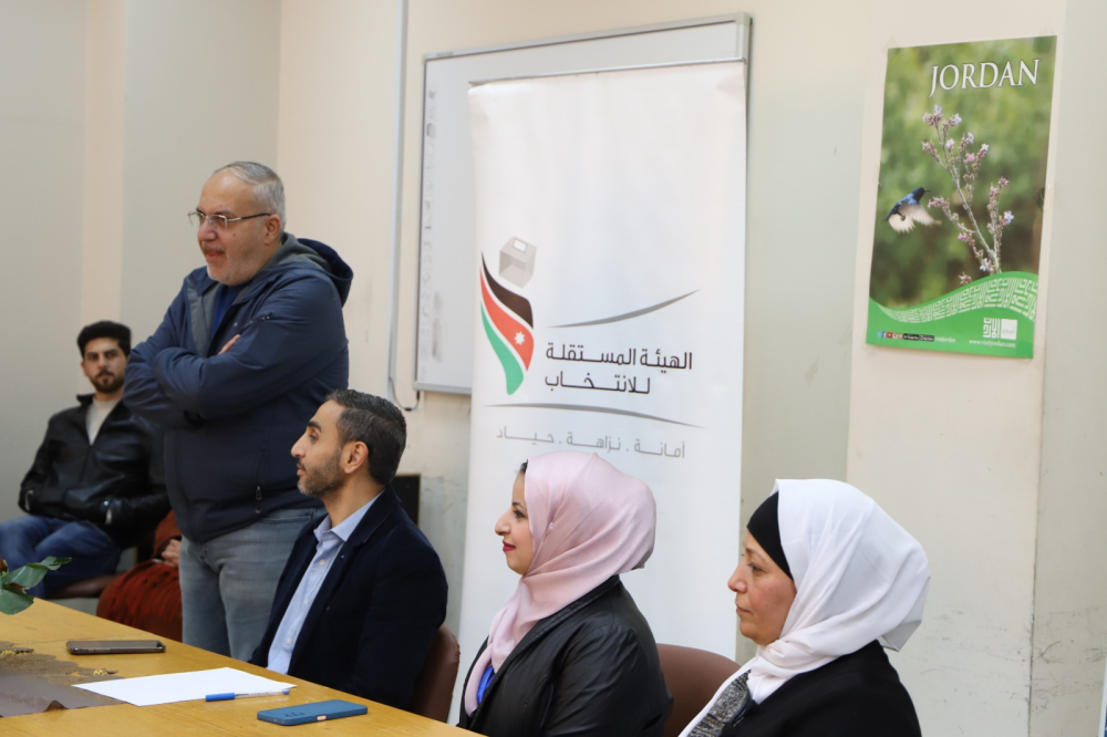 نفذت الهيئة المستقلة للانتخاب- برنامج انا اشارك وبالتعاون مع عمادة شؤون الطلبة جلسة حوارية بعنوان مشاركة المرأة في الحياة الحزبية ووصولها الى مراكز صنع القرار في الأردن ادارها مدير مشروع الشراكة الاستاذ أوس قطيشات وبحضور نائب عميد شؤون الطلبة الدكتور حسين الاحمر وعدد من طلبة الجامعة