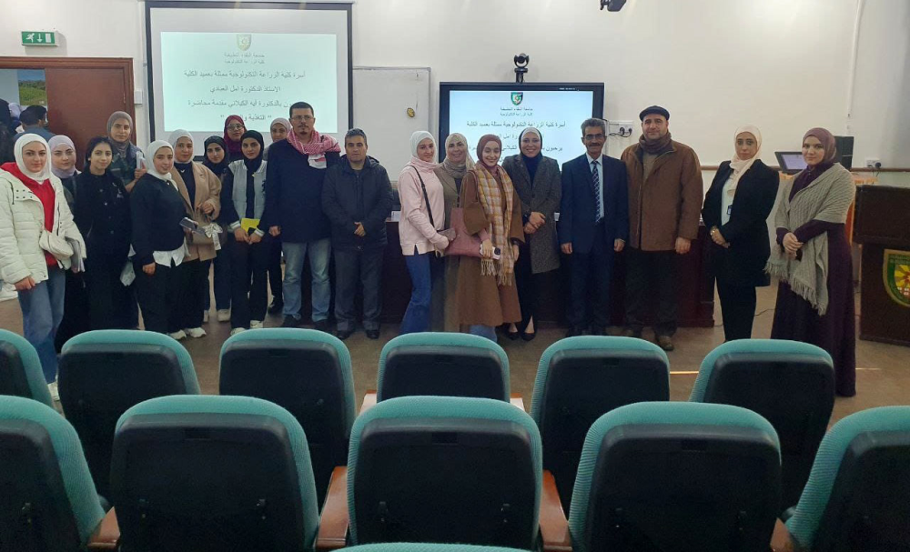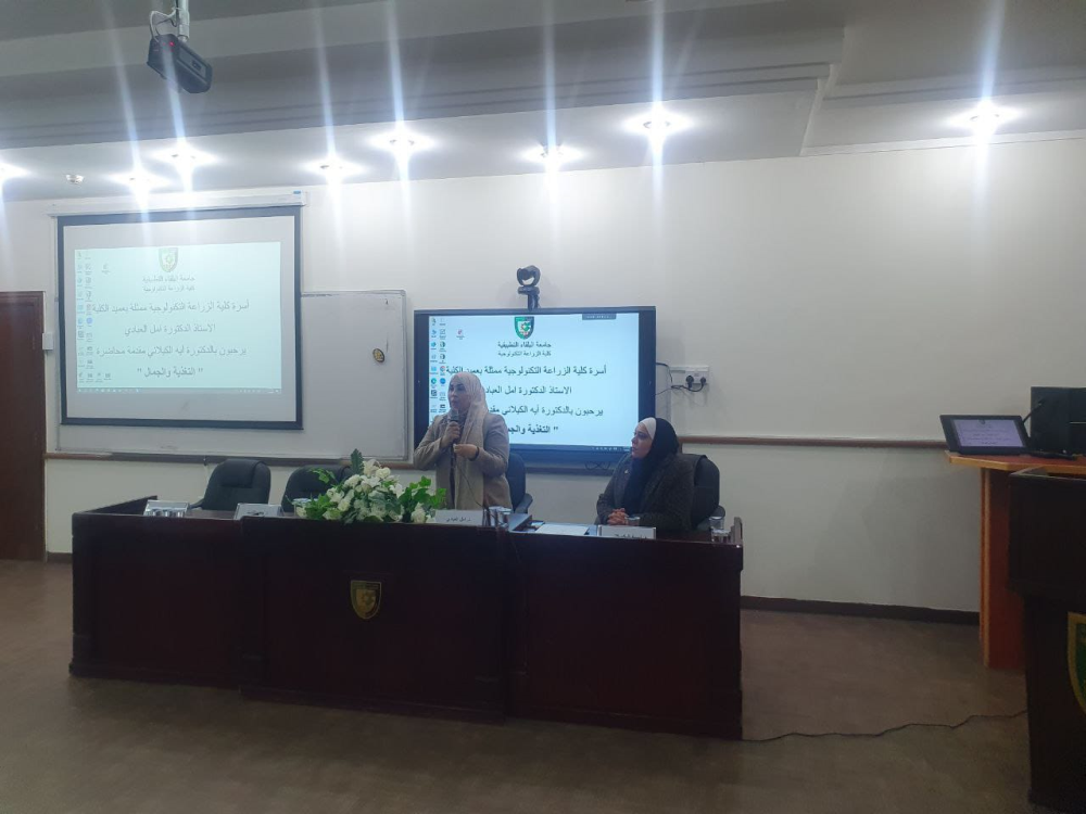 تحقيقا لرؤية جامعة البلقاء التطبيقية و كلية الزراعة التكنولوحية في اثراء خبرات الطلبة وربط دراستهم الاكاديمية بالتطبيقات العملية وخدمة المجتمع المحلي وبتوجيه من عطوفة رئيس الجامعة الاستاذ الدكتور احمد فخري العجلوني وبحضور الاستاذ الدكتورة امل العبادي نظم قسم التغذية والتصنيع الغذائي في كلية الزراعة التكنولوجية محاضرة بعنوان "التغذية والجمال" قامت بتقديمها الدكتورة ايه الكيلاني بحضور أعضاء الهيئة التدريسية والإدارية وطلبة قسم التغذية والتصنيع الغذائي حيث تحدثت الدكتورة ايه الكيلاني عن الرابط الوثيق بين التغذية السليمة والجمال وانعكاسها على الجمال الداخلي أيضا للإنسان.