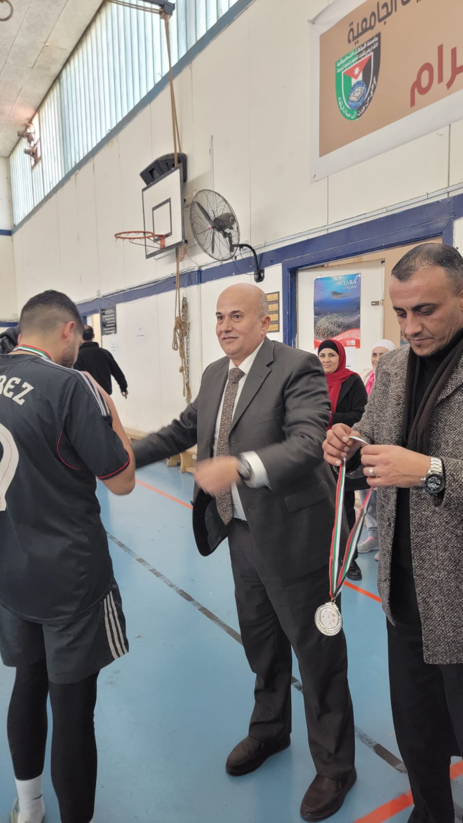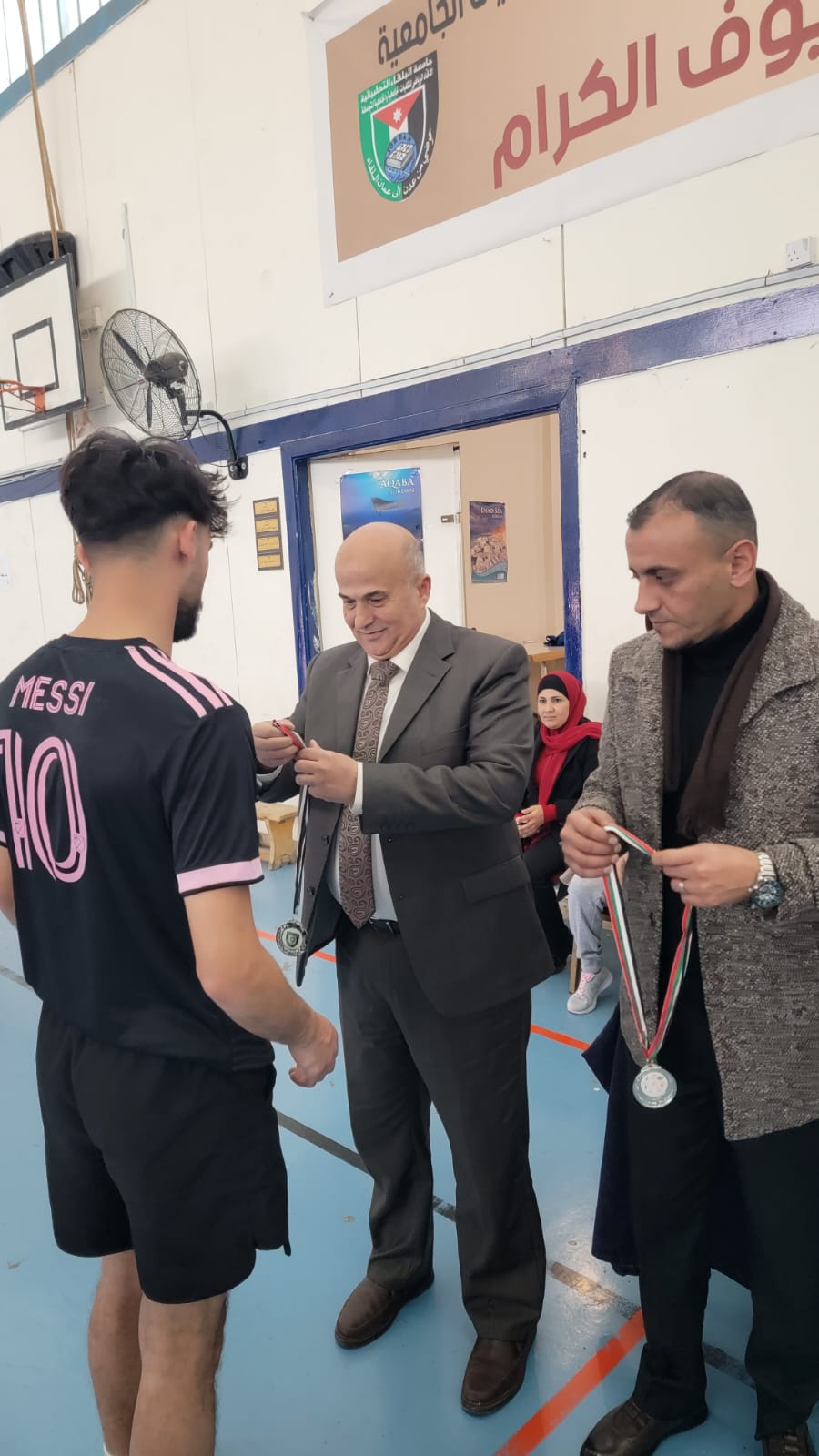 بحضور عميد كلية الذكاء الاصطناعي الأستاذ الدكتور عمر الزعبي، نظّمت إدارة الشؤون الطلابية في الكلية يوم الأحد الموافق 7/ 1/ 2024 وبالتنسيق مع عمادة شؤون الطلبة / دائرة النشاط الرياضي بطولة خماسي كرة القدم ل خمسة فرق تضم: (فريق تخصص الذكاء الاصطناعي والروبوتات، وفريق الواقع الافتراضي، وفريق علم البيانات، وفريق التحقيقات الجنائية، وفريق أمن المعلومات والفضاء الالكتروني)، وقد حضر المباراة النهائية الأستاذ الدكتور عمر الزعبي عميد الكلية وقام بتكريم الفرق الفائزة، حيث حصل فريق الذكاء الاصطناعي والروبوتات على المركز الأول، وفريق علم البيانات على المركز الثاني مبارك للفرق الفائزة مقدرين جهود القائمين على هذه البطولة.