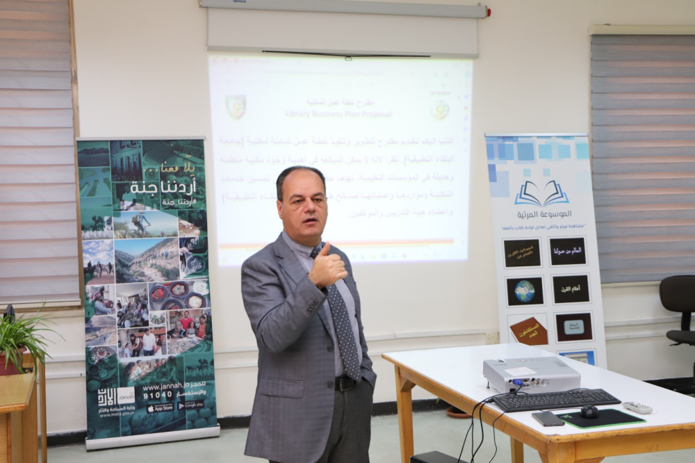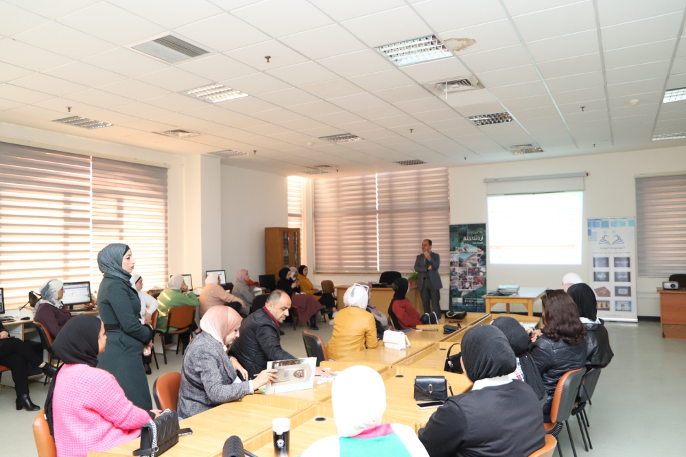 وانطلاقا من اهداف جامعة البلقاء التطبيقية في تحقيق خطة ادارة المعرفة افتتح مدير وحدة المكتبة المركزية في الجامعة الاستاذ الدكتور عثمان عبيدات فعاليات الورشة التدريبية التي نظمتها وحدة المكتبة المركزية من خلال دائرة المكتبة الاكترونية بعنوان كيفية استخدام قواعد البيانات الالكترونية بحضور مديرة المكتبة الالكترونية مها العدوان ومساعد مدير الدائرة رامي دراداكة وعدد من مدراء الدوائر وموظفي وحدة المكتبة