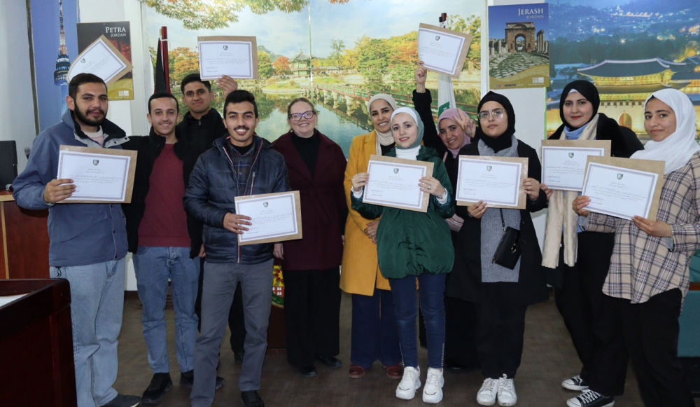 وقد سلمت الدكتورة أسماء الوريكات والبروفيسور غرين خلال حفل الاختتام الشهادات على الطلبة المشاركين والبالغ عددهم (20) عشرون طالبا وطالبة من مختلف كليات الجامعة، وقد أبدى الطلبة إعجابهم بمستوى التدريب المقدم من البروفيسور غرين، هذا وقد أعربت الدكتورة أسماء الوريكات عن شكرها وتقديرها للبروفيسورة غرين على جهودها المبذولة خلال هذه الدورة.