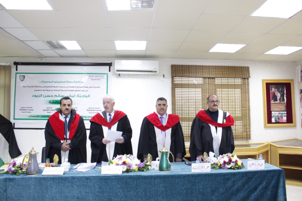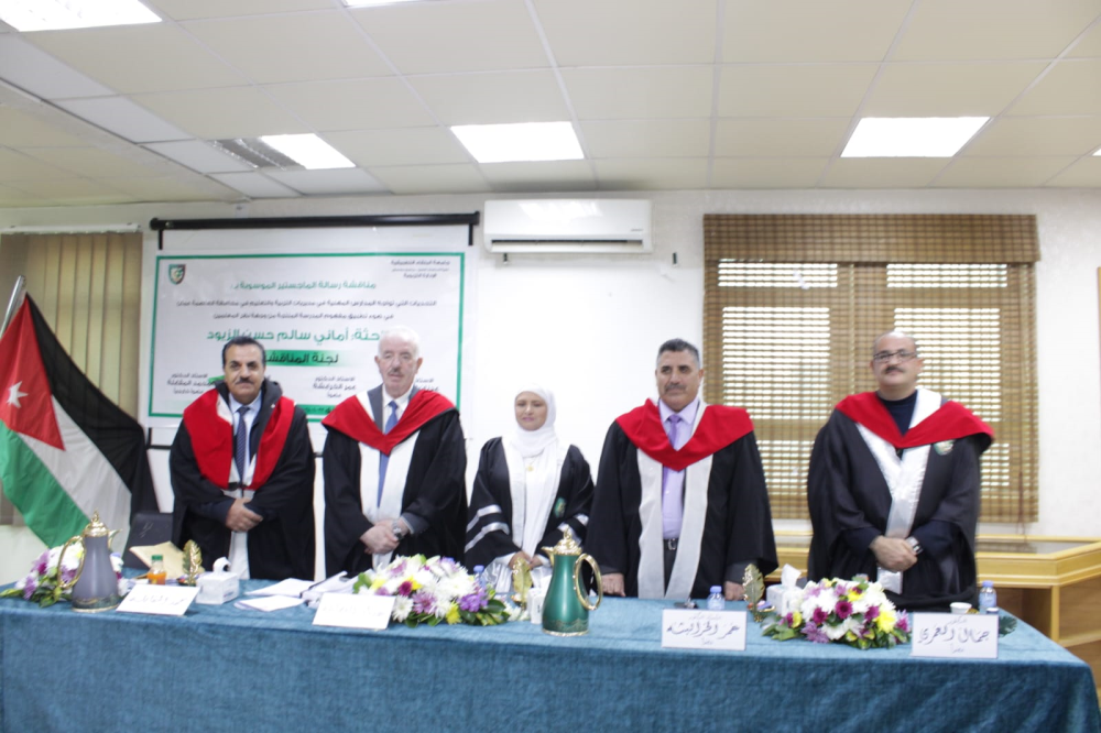 تم في صباح يوم الثلاثاء 23/1/2024 ، مناقشة رسالة ماجستير للطالبة أماني سليم الزيود تخصص الادارة التربوية قسم العلوم التربوية والموسومة بـ :