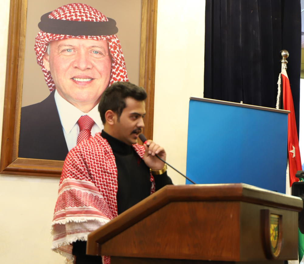 والقى عميد شؤون الطلبة الاستاذ الدكتور خالد الزعبي كلمة قال فيها ان ذكرى ميلاد قائد الوطن وملك القلوب هي ذكرى غالية على قلوبنا جميعا، نحتفل بها كل عام بإقامة بطولة القائد في عدد من