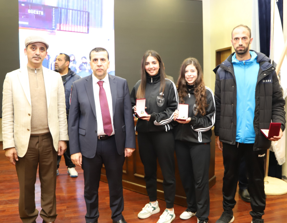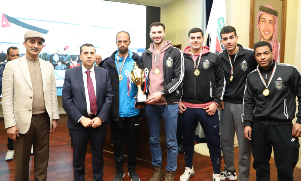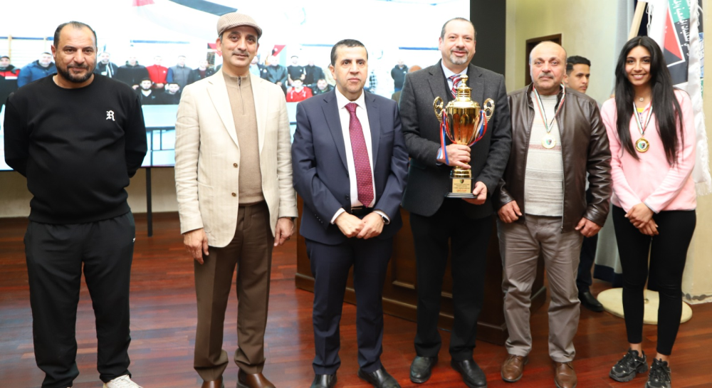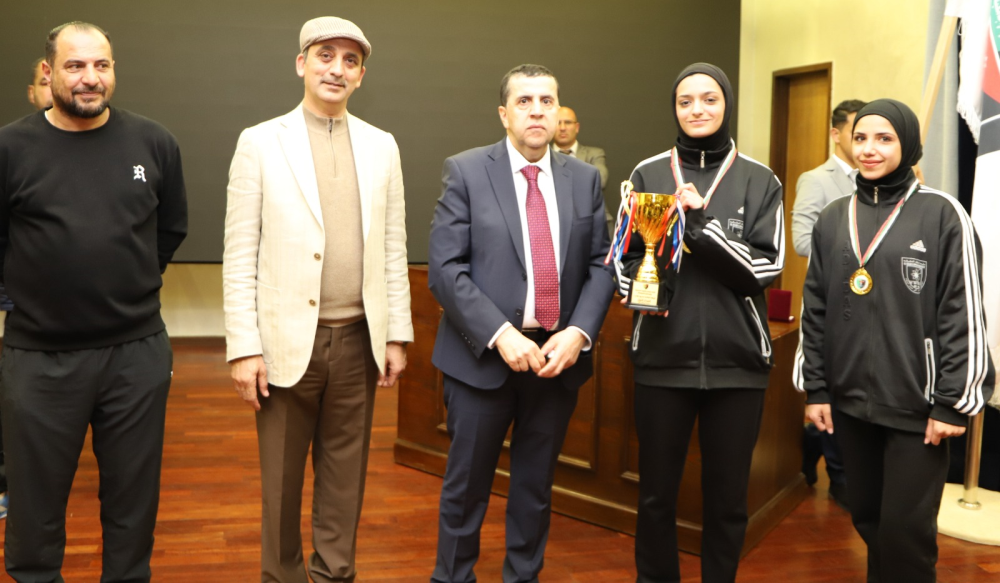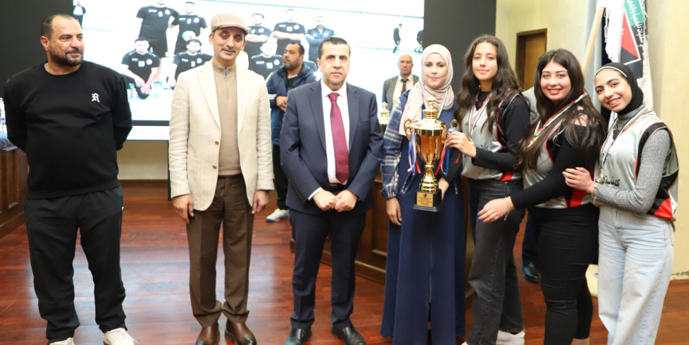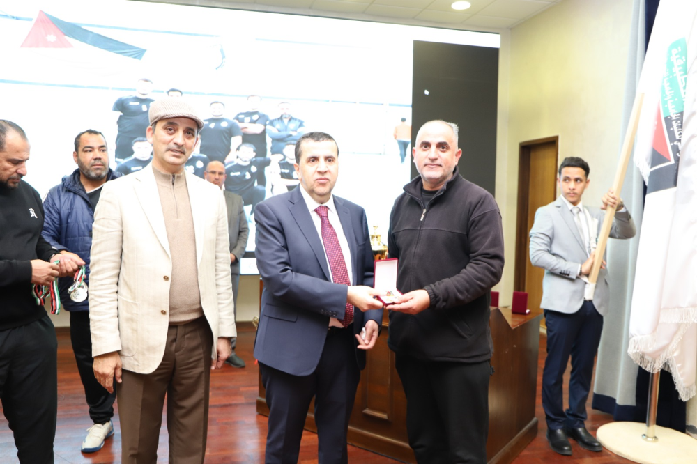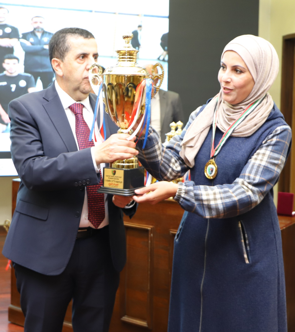 كما تسلم جوائز كأس الاتحاد الشامل طالبات عميد شؤون الطلبة الاستاذ الدكتور خالد الزعبي، ووسام الاتحاد للمشرف الرياضي الكابتن إيناس ابو شقراء.