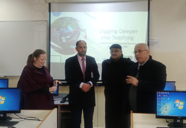 افتتح عميد كلية اربد الجامعية الأستاذ الدكتور يحيا سلامه خريسات الدورة التدريبية: "التعلم معا لتعزيز تدريس اللغة الانجليزية لدينا"، بحضور الدكتور جمال العمري مساعد مدير مركز تكنولوجيا التعلم والتعليم في مركز الجامعة ، والتي تنظمها وحدة التعاون والعلاقات الدولة ومركز تكنولوجيا التعلم والتعليم لمدرسي اللغة الانجليزية من أعضاء هيئة التدريس في كلية اربد والحصن وعجلون الجامعية ، والتي تقام في مركز الحاسوب في كلية اربد الجامعية تقدمها الدكتورة جينيفر غرين باحثة فولبرايت من جامعة واشنطن الأمريكية والتي تهدف إلى بناء القدرات الخاصة في مجال استخدام التكنولوجيا في العملية التعلمية والتعليمية ، حيث تستمر الدورة لمدة يومين.