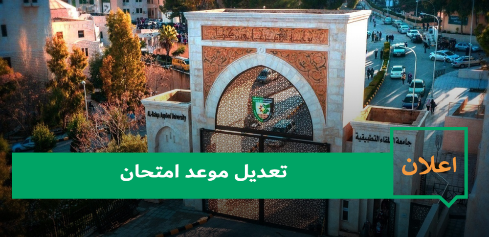 يعلن المسجل العام في جامعة البلقاء التطبيقية عن تعديل موعد عقد الامتحان النصفي لمادة المجتمع الرقمي لطلبة مركز الجامعة ليصبح يوم الاثنين الموافق 2024/4/29 بنفس المواعيد والقاعات التي كانت معلنة سابقا على شاشات الطلبة.