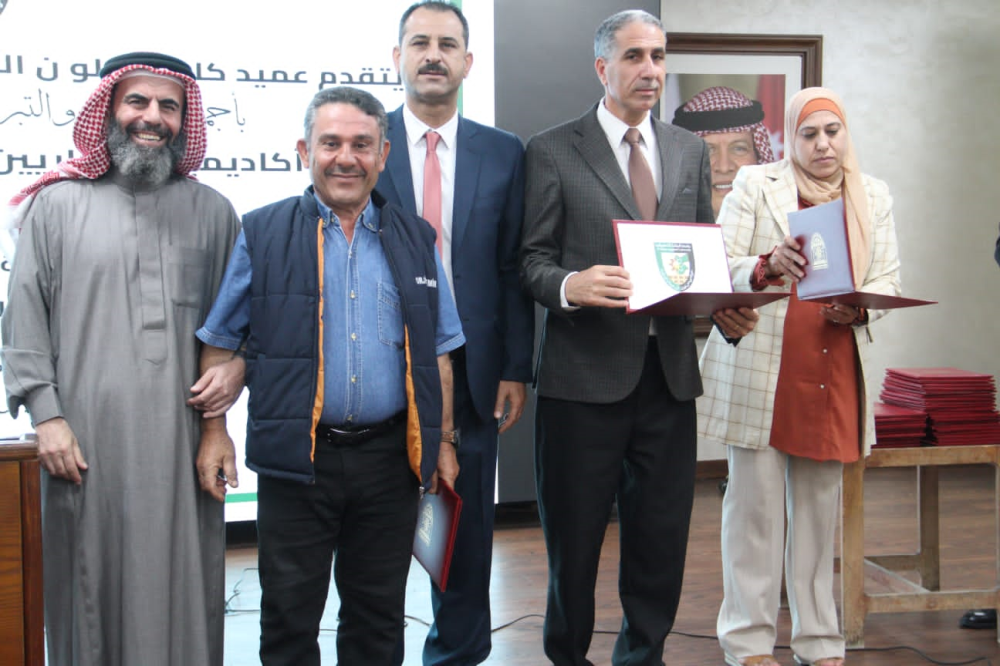 وفي نهاية الفعالية كرم عميد الكلية عمال وعاملات الكلية بتسليمهم شهادات تقديريه لجهودهم التي يبذلونها في خدمة كليتهم ووطنهم الغالي .