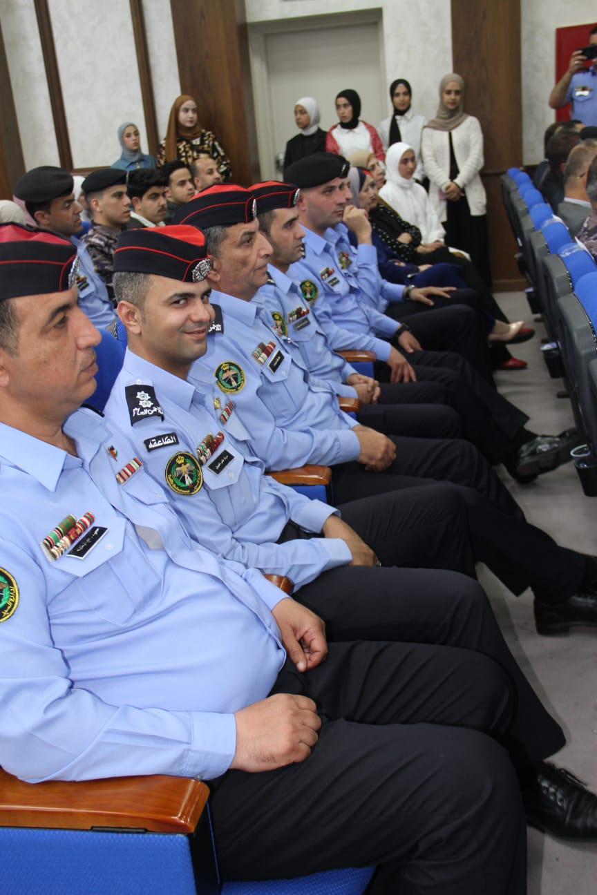 وتحدث عميد الكلية في كلمته قائلا: " يتزين الأردن بعقد يشكل لوحة من الجمال والإتقان والتنظيم طُرز بفكر هاشمي إتسم بالرقي والإبداع والأصاله إلى أن أصبح الأردن واحة جميلة في كل مناحي الحياة لا سيما ما يرتبط بهذه المناسبة الكريمة ألا وهي يوم المرور العالمي الذي يرتبط بخدمة البشرية الذي أصبح يشكل الأساس في سلوكنا الحياتي انطلاقًا من ارتباطه بكل فرد وبكل مؤسسة كي تستمر مسيرة الأمن والحفاظ على أرواح البشرية والممتلكات" .
