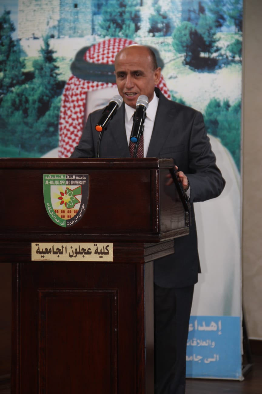 وألقى عميد الكلية الأستاذ الدكتور وائل الربضي كلمة رحب فيها بإسم عطوفة الأستاذ الدكتور أحمد فخري العجلوني رئيس جامعة البلقاء التطبيقية باصحاب العطوفة والسعادة ومرتبات الأمن العام في رحاب كلية عجلون الجامعية .