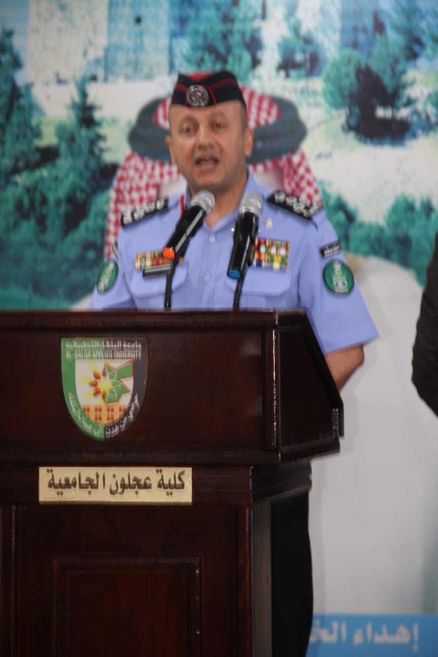 وقدم محافظ عجلون الدكتور قبلان الشريف عدد من النصائح التربوية للطلبة ليكونوا متميزين في تخصصاتهم في ظل واقع الفقر والبطالة الذي نعيشه ،والتأكيد على رؤى وفلسفة جامعة البلقاء التطبيقية في التأكيد على الجانب المهني والتقني الذي يسهم في الحد من البطالة . وأن العملية المرورية هي مسؤولية جماعية ومجتمعيه لاتخص جهة بعينها مشيرا الى جلالة الملك عبد الله الثاني يولي الواقع المروري والعملية المرورية اهمية بالغة حيث ان الانسان يشكل الثروة الحقيقية لهذا الوطن .