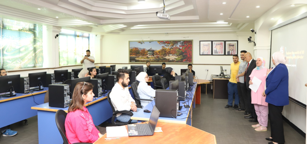 عقد المركز الاردني الكوري للمعلومات وتكنولوجيا الاتصالات وبالتعاون مع كلية الذكاء الاصطناعي دورة تدريبية بعنوان (استكشاف عالم النماذج الثلاثية الابعاد مع Blender ) حضرها عميد كلية الذكاء الاصطناعي الاستاذ الدكتور عمر الزعبي ومديرة المركز الاردني الكوري للمعلومات وتكنولوجيا الاتصالات الدكتور ربا ابو شهاب