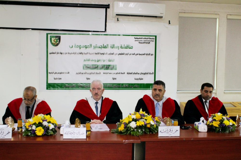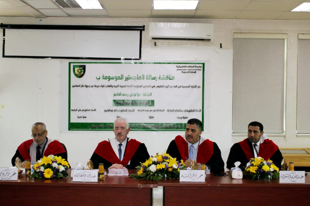 تم في مساء يوم الثلاثاء 7/5/2024 ، مناقشة رسالة ماجستير للطالبة مها توفيق غنانيم تخصص تخصص الادارة التربوية قسم العلوم التربوية والموسومة بـ :