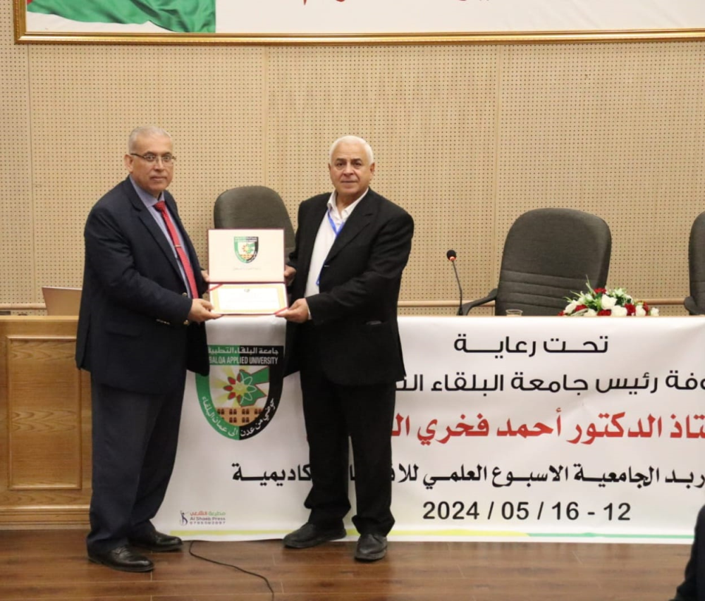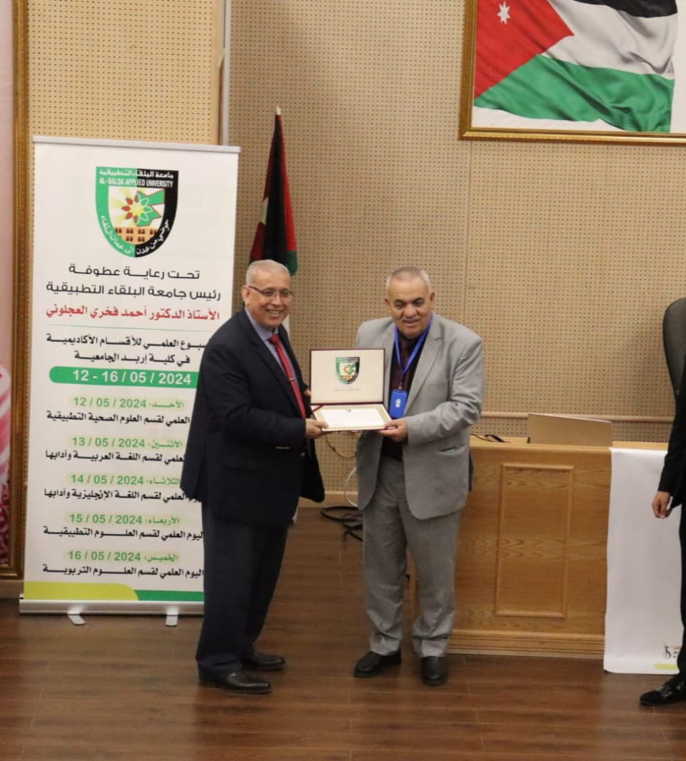 وفي ختام اليوم العلمي قام عميد الكلية الأستاذ الدكتور يحيا سلامه خريسات بتسليم شهادات الشكر والتقدير على المشاركين.