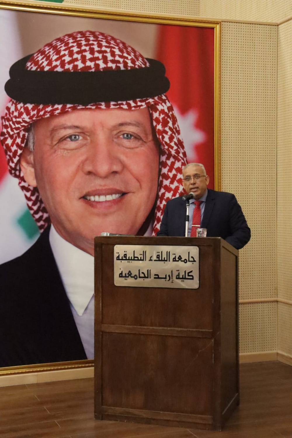 مندوبا عن الأستاذ الدكتور أحمد فخري العجلوني رئيس جامعة البلقاء التطبيقية، افتتح عميد كلية إربد الجامعية الأستاذ الدكتور يحيا سلامه خريسات فعاليات اليوم العلمي لقسم اللغة الانجليزية وآدابها في الكلية، واشتملت فعالية هذا اليوم على مجموعة من المحاضرات العلمية المتخصصة وأوراق العمل من الأكاديميين والمتخصصين لأساتذة من جامعة جرش الأهلية والكلية.