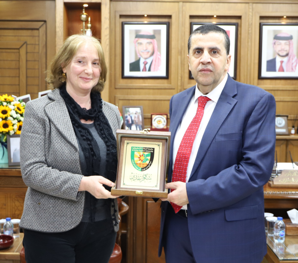 الأستاذ الدكتور أحمد فخري العجلوني رحب بسعادة سفير الإتحاد الأوروبي والوفد المرافق له حيث قدم الدكتور العجلوني ايجازاً عن الجامعة وكلياتها والتخصصات التي تدرس فيها ، مشيراً إلى أن جامعة البلقاء التطبيقية تعد أكبر جامعة وطنية في الأردن ولها كليات منتشرة في جميع محافظات المملكة كما وتعد أيضاً جامعة تطبيقية بإمتياز .