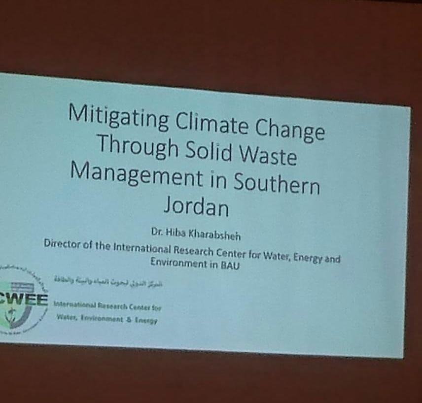 شاركت الدكتورة هبة الخرابشة مديرة المركز الدولي لبحوث المياه والبيئة والطاقة في فعاليات ورشة العمل التدريبية التشاركية تحت عنوان " الابتكار من أجل التخفيف من تغير المناخ: التعاون من أجل الحد من انبعاثات الغازات الدفيئة في إدارة النفايات" وذلك في اطار مشروع " التخفيف من آثار تغير المناخ في مجال ادارة النفايات الصلبة في جنوب الأردن"، الممول من الحكومة الكندية ويتم تنفيذه من خلال برنامج الأمم المتحدة الإنمائي بالتعاون مع وزارة الإدارة المحلية والبلديات ومجالس الخدمات المعنية في المنطقة المستهدفة من المشروع.